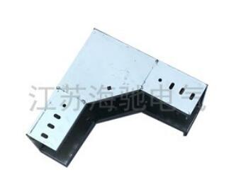托盘式电缆桥架安装时要求桥架弯折后底边的长度与桥架的宽度相同,但范围必须控制在100~400㎜以内,并选取该长度的两点,在桥架侧壁画出两条相对底边的垂直线,长度的距离都可以通过简单的计算来控制,使弯头的角度和长度符合要求。
